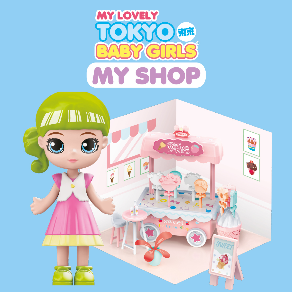 Boutique, sweets shop, ristorante, pet shop. In ogni busta è compresa anche una bambolina My Lovely Tokyo Baby Girl.