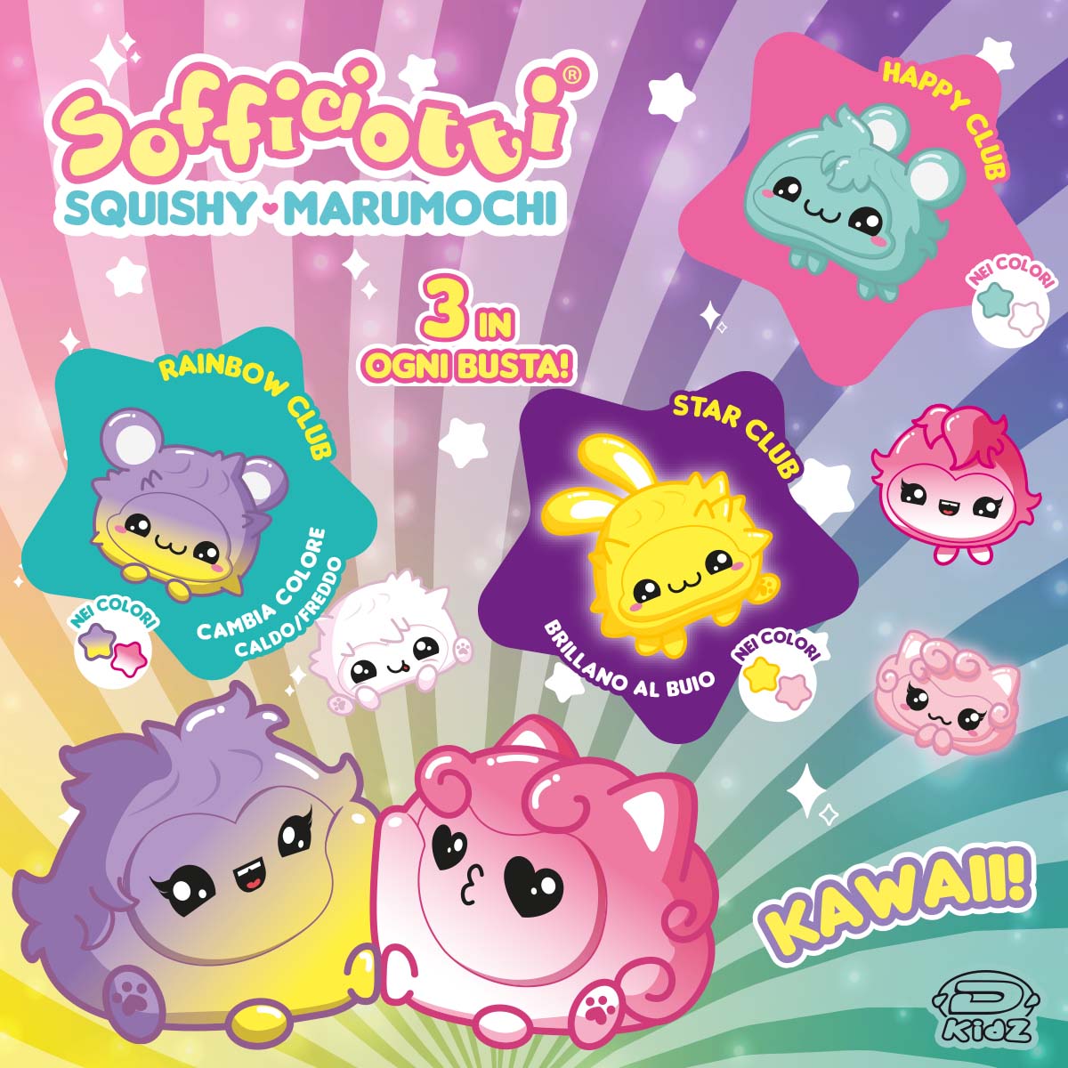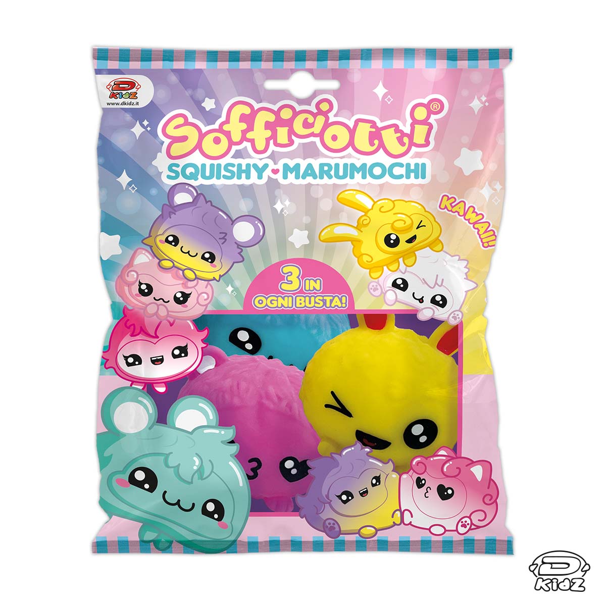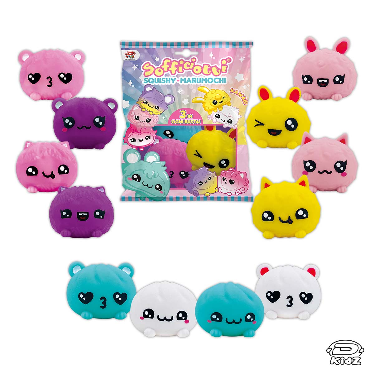 La collezione dei Marumochi è composta da 6 colori e oltre ad essere estremamente Kawaii sono squishy, perfetti da strizzare, ASMR e tanto antistress. In ogni busta si trovano ben 3 Marumochi e sono tutti da collezionare.