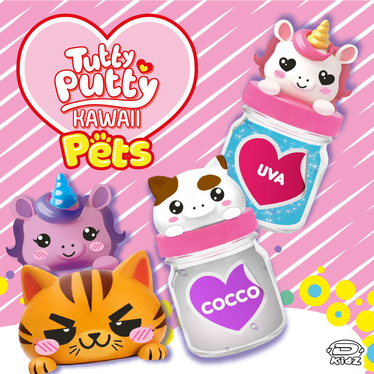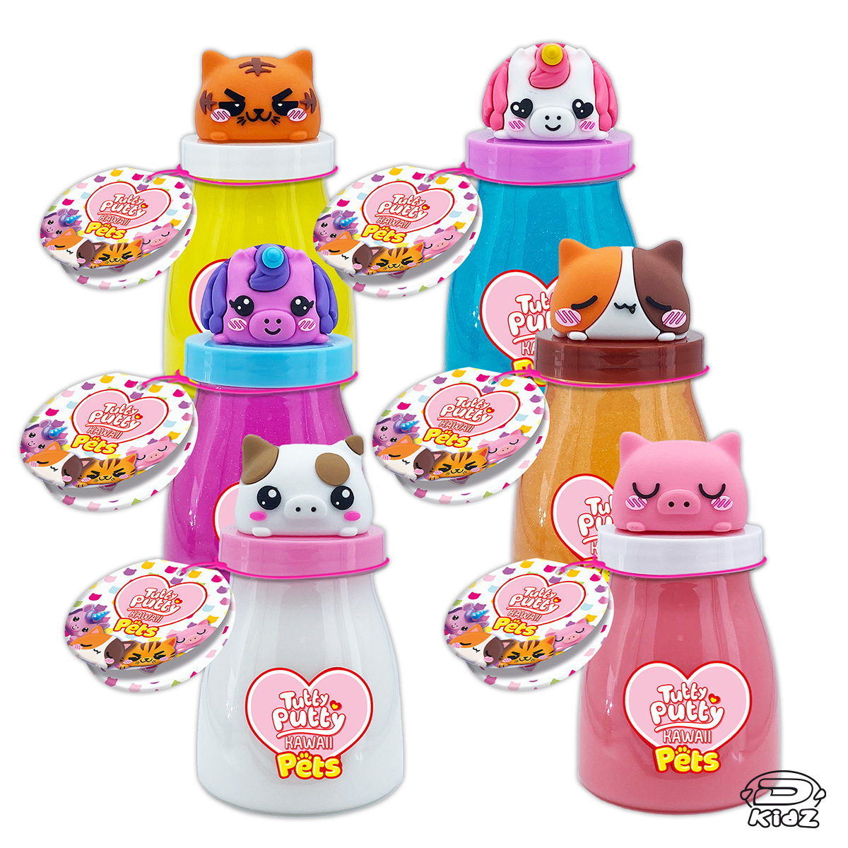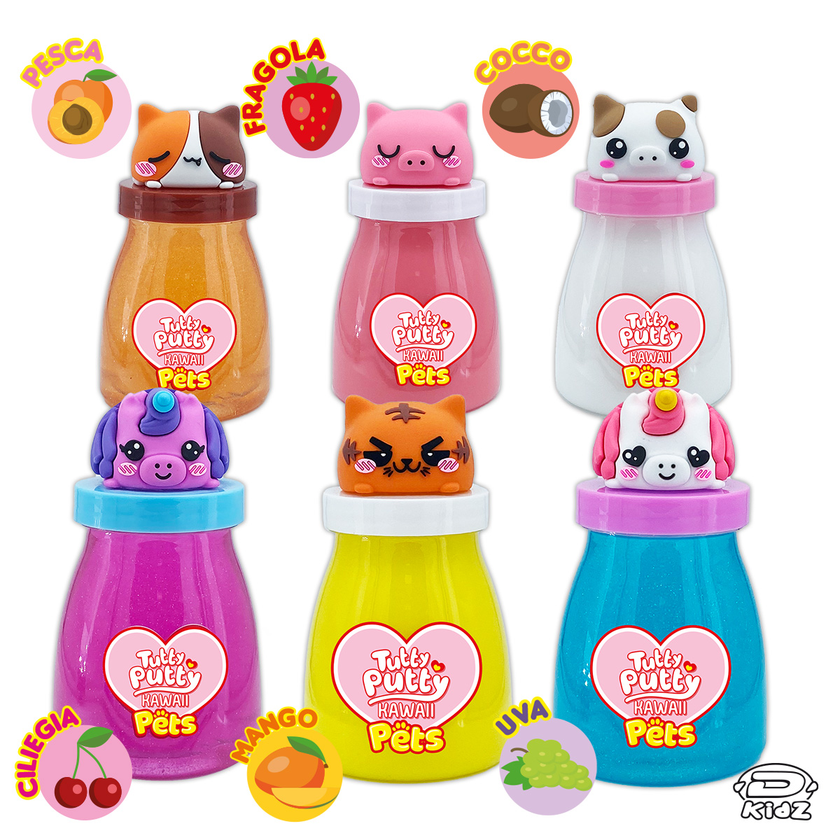 Tornano i Tutty Putty Kawaii Pets! La qualità resta quella di sempre: morbido, malleabile, disponibile nelle due varianti Fluffy e Crystal, e arricchito da profumazioni selezionate con cura per rendere l’esperienza di gioco ancora più piacevole. La vera novità? Una deliziosa decorazione 3D sul coperchio: la testolina di un pet super cute Tre soggetti tra cui scegliere: gatto, maialino o unicorno